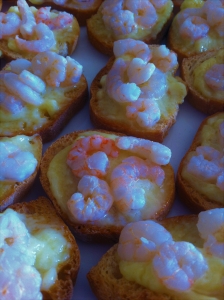 Bien sûr, si vous préférez mettre une grosse crevettes par tartine, ça marche aussi. C’est à vous de voir.