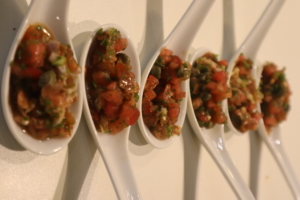 Il faut un tant pour tant en quantité de tomate et de pastèque, il est donc difficile de quantifier précisément. Mais si vous vous basez sur une demi petite tomate cœur de bœuf, vous quantifiez la pastèque proportionnellement.