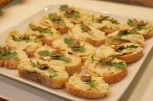 Réalisation : Tartinez la brandade sur les tranches de baguette, installez une feuille de roquette par toast, déposez un morceau d’anchois sur le dessus….. dégustez :-)
