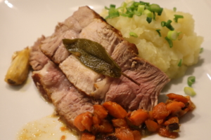 Faire dorer le morceau d’échine dans l’huile d’olive chaude, sur toutes ses faces.