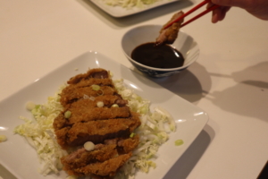 Servir avec la sauce TONKATSU séparément pour y tremper les morceaux de viande panées, et régalez-vous !