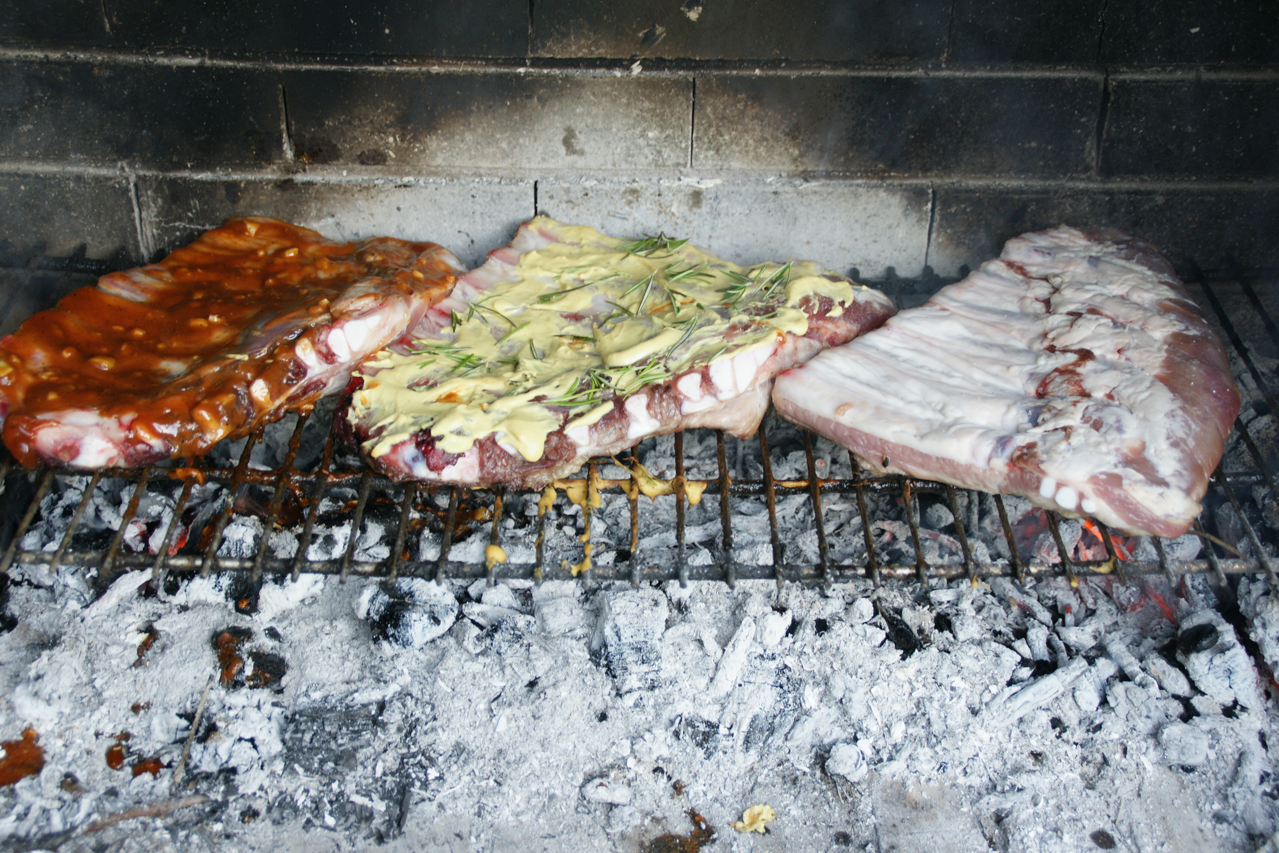 Réalisation : Pour les travers à l’américaine : Mettre tous les ingrédients mélangés en marinade. En tartiner le morceau de travers et laisser mariner au frigo au moins 2 heures. Sortir du frigo une heure avant de le cuire au barbecue. Pour les travers à la moutarde : Tartiner simplement les travers de moutarde forte et effeuiller du romarin dessus. Laisser mariner au frais au moins 1.30. Le sortir du frigo une heure avant de le cuire.