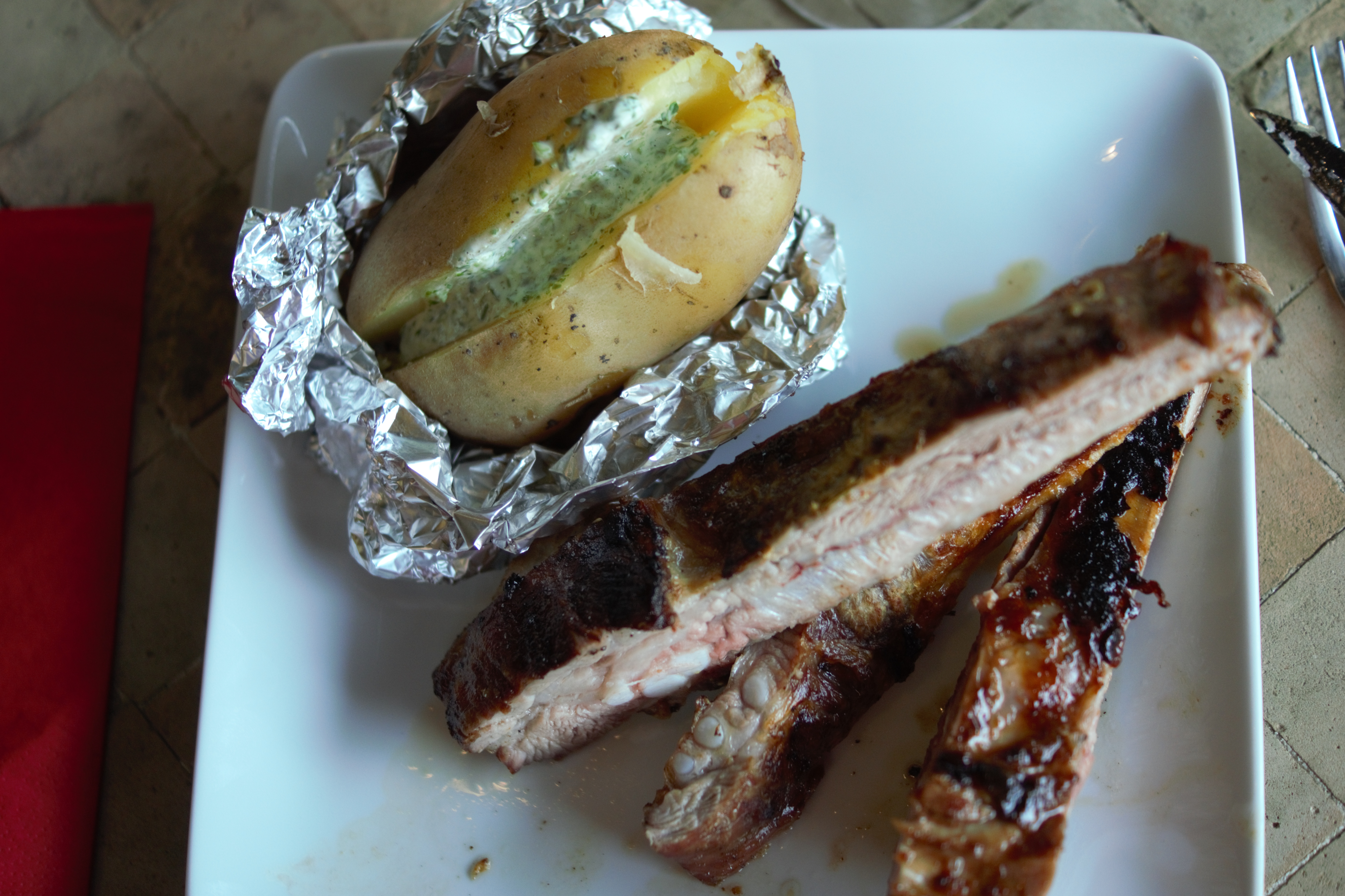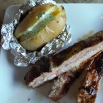 Pour les travers de porc nature : Le sortir du frigo une heure avant cuisson. Installer les travers sur la grille du barbecue. Et laisser cuire environ 30 minutes en les retournant au moins 3 fois en 30 minutes. Le travers à l’américaine aura besoin de 40 à 45 minutes de cuisson selon l’épaisseur du morceau. Servir avec de pommes de terres cuites en papillotes au four. Les laver et les envelopper individuellement dans des feuilles de papier aluminium fermées le plus hermétiquement possible. Enfourner à four chaud à 180° C pour 1 heure environ. Prévoir une sauce à la crème fraîche dans laquelle on ajoute un mélange haché de persil et une cébette, avec du sel et du poivre
