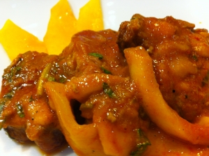 Merci à mon amie V. qui m’a donnée cette recette bien épicée ! 🙂 Elle m’a aussi dit qu’on peut remplacer la mangue par de l’ananas…. à tester !