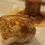 Préchauffer le four à 180°C Étaler la pâte feuilletée et y découper 5 disques d’environ 22 cm de diamètre (se servir d’une assiette comme modèle) déposer les « boules de crêpes/viande ») après leur avoir ôté le film alimentaire. Refermer les petits dômes en scellant la pâte à l’aide d’eau, et mettre la « jointure » sur une feuille de papier sulfurisée, préalablement beurrée. Dorer chaque petit dôme à l’aide d’un jaune d’œuf, et enfourner pour 20 minutes pour une cuisson rosée, ou 25 minutes pour une cuisson à point. Pendant cette cuisson, réaliser la sauce, ajouter dans le madère réduit, le reste de duxelles (s’il y en a) puis le mélange de champignons forestiers, le fond de veau et la crème fraîche, sel et poivre, et laisser mijoter à feu très doux 10 minutes maximum. Dresser joliment et servir chaud !