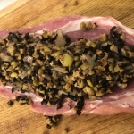Déposer en son centre la farce aux olives sur toute la surface. Le ficeler le mieux possible.