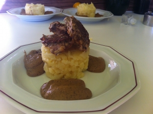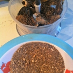 (j’ajoute la chapelure de morilles restante à la sauce pour éviter le gaspillage, et je redonne un coup de mixeur dans la sauce que je garde au chaud.)