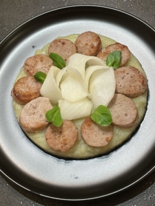 Boudin blanc à la purée de poires