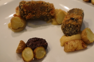 Installer tous les ingrédients selon votre envie dans les assiettes, et servir assez chaud. On peut couper les grenailles en deux pour montrer leur tranches, on peut garder une tranche de boudin nature pour participer à la « déco » de l’assiette, bref, faites comme vous le sentez 🙂