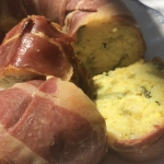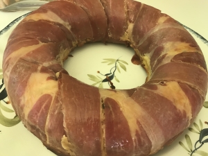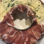 Chemiser les parois d’un moule couronne avec les tranches de jambon cru. Incorporer délicatement les courgettes/oignons au mélange œuf/crème.