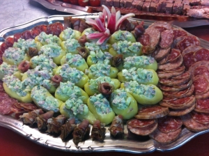 Je prépare donc la salade comme ci-dessus sans mettre de pommes de terre coupées en cubes, puisqu’elles seront le contenant. Les Amandines peuvent se cuire la veille car bien sûr ça se sert froid.