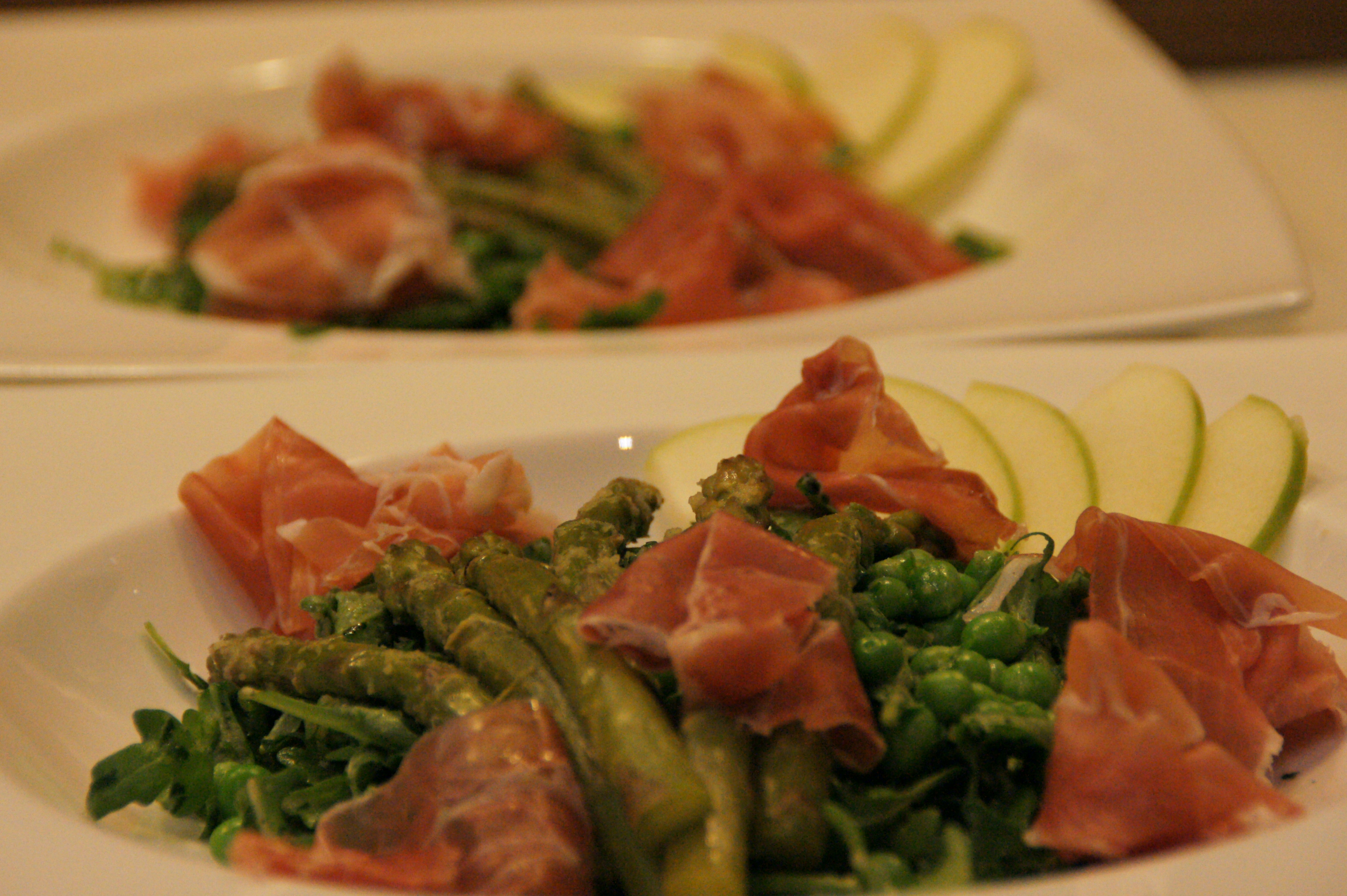 Salade printanière au jambon cru