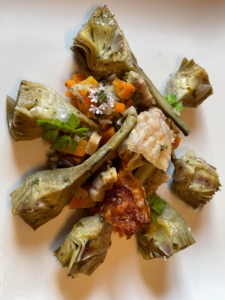 Il existe pleins de recettes d’artichaut barigoule, avec plus ou moins d’ingrédients … à vous de faire votre propre création 🙂 Certains préfèrent mettre de la poitrine fumée à la place du petit salé provençal…. à vous de voir 🙂