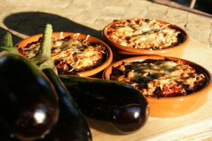 Transférer les aubergines dans un plat à gratin pour l’enfourner pendant 40 mn environ (je les remue une ou deux fois pendant cette cuisson).