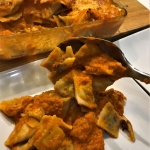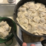Je compte 2 douzaines de ravioli Olivier par personnes, quand c’est un plat unique et servit avec une salade verte. Je mets une grande casserole d’eau à bouillir. Pendant ce temps je coupe les ravioli à l’aide d’une paire de ciseaux, pour les détacher les uns des autres. Quand l’eau boue, je les mets délicatement dedans, et à la reprise de bouillonnement, je baisse le feu pour obtenir un frémissement d’eau qui n’éclatera pas les ravioli. Le temps de cuisson dépend de la fraîcheur des ravioli, quand ils sont frais du jour, il leur faut environ 5 minutes, mais dès le lendemain, il faut compter 6 ou 7 minutes, et le 3ème jour une petite dizaine de minutes. Pour les égoutter je les prends à l’aide d’une écumoire pour les mettre délicatement dans la passoire et ainsi éviter de les déchirer avec la « puissance de l’eau » qui tombe de la casserole. Je les sers de différentes façons : avec une sauce tomate, ou simplement avec du beurre et du fromage râpé, ou avec un jus de viande de volaille ou de daube par exemple.