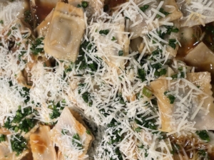 Ajouter les ravioli à la sauce Primlavera. Saupoudrer de persil haché et de parmesan râpé.