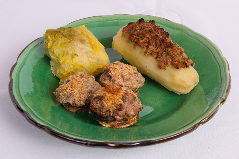 - feuilles de choux farcies : de la chair à saucisse, de la poitrine fumée, des carottes et des oignons, hachés et enfermés dans des feuilles de choux, le tout cuit au four avec un petit bouillon de carottes.